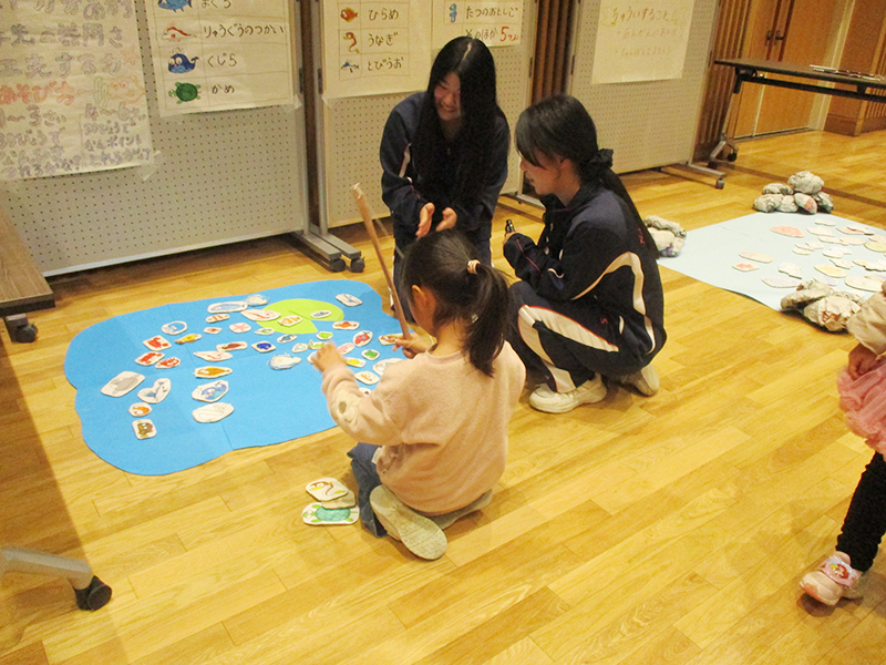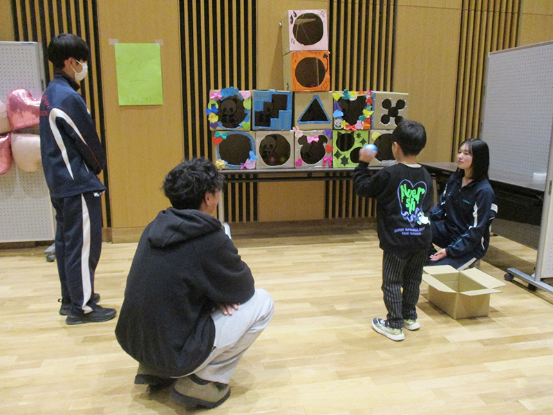 長野南高等学校主催の子育て支援イベント「わくわく広場」に幼児教育学科1、2年生4名の学生がボランティアで参加し、来場された親子の皆さまへコンセルジュとして会場を案内。一緒に遊んで楽しく豊かに過ごしました。
